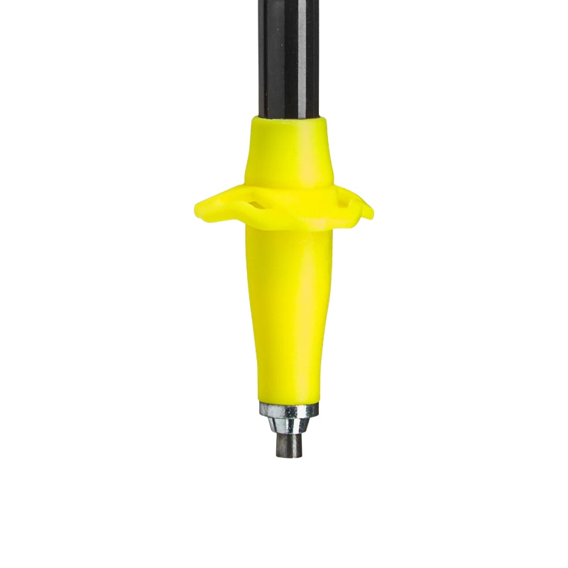 L’asta in carbonio ultraleggero Ø 14 mm offre rigidità e controllo, mentre l’impugnatura Spartan minimal con cinturino D-Loop Mesh garantisce comfort, traspirabilità e regolazione rapida grazie al sistema a pulsante integrato.