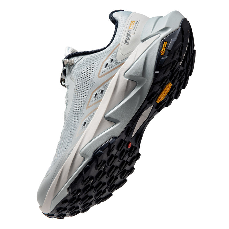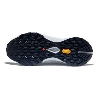 L’intersuola in EVA reattiva, più leggera del 15% rispetto alle versioni tradizionali, assicura ammortizzazione elastica e ritorno di energia a ogni passo. Sotto, la suola Vibram® Megagrip con tasselli triangolari multidirezionali offre una presa potente e sicura su superfici bagnate o asciutte, unendo fluidità di corsa e stabilità nei tratti tecnici.